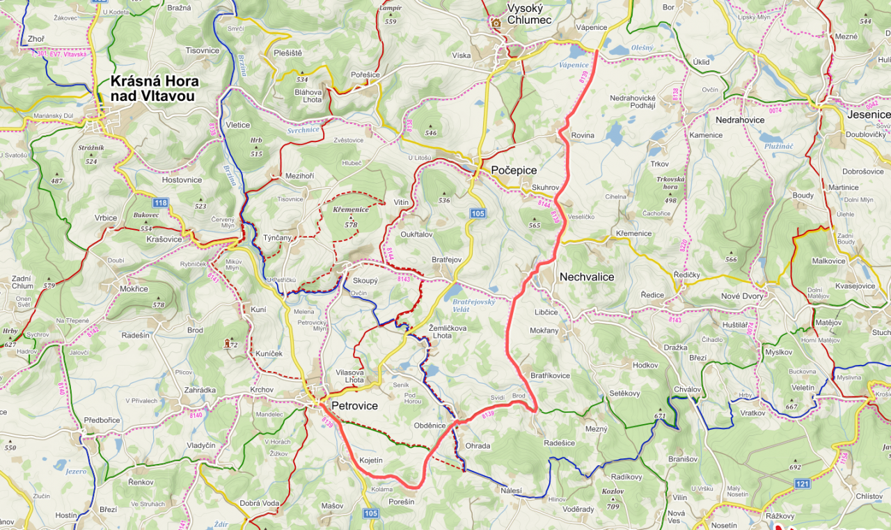 Petrovice (křížení s trasami č. 8140 a 8144) - Kojetín - Porešín - Obděnice - Radešice - Bratříkovice - Nechvalice, křižovatka (křížení s trasou č. 8143) - Nechvalice (křížení s trasou č. 8143) - Veselíčko (křížení s trasou č. 8144) - Rovina - Vápenice, křižovatka (křížení s trasou č. 8138)